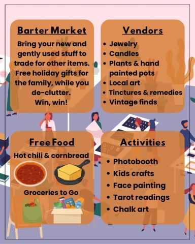 Avoid feeding the corporate monster by shopping and trading with us and our vendors for your Holiday gifts and keep your dollars in your community.